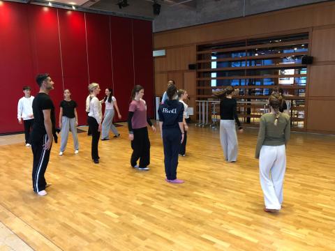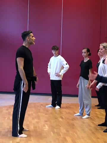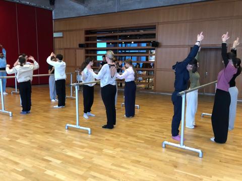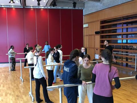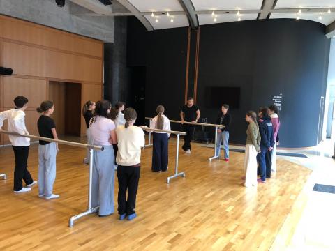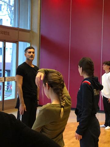 Par la suite les élèves ont participé à une classe proposée par le répétiteur et maître de ballet du Malandain Ballet Biarritz : Giuseppe Chiavaro. Il a initié le groupe à une barre classique et quelques enchaînements au milieu. D’une grande bienveillance et avec une générosité inouïe et admirable, Giuseppe a fait voyager les élèves dans la danse classique. Chacun a pu apprécier ce moment, se surpasser et certainement être fier de ce qui a pu être accompli.