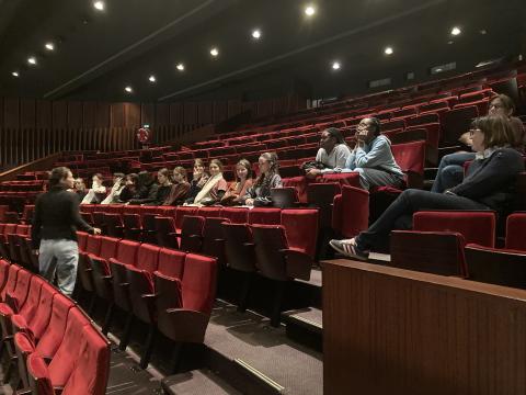 Puis Marion Coutel a emporté le groupe dans La Maison de La Danse. Les coulisses, la scène, la salle, quelques recoins de cette grande institution ont pu être visités. Les élèves ont pu également dialoguer avec elle afin qu’elle leur présente son parcours et son métier.