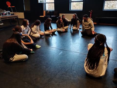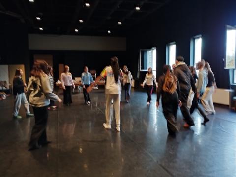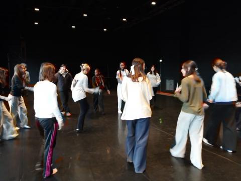 Généreusement accueillis par la souriante Doriane REY qui, comme chaque année, veille à ce que notre groupe puisse profiter dans les meilleures conditions de ce lieu, la journée a commencé par un atelier de danse de deux heures avec l’un des danseurs de la compagnie de SaIdo Lehlouh, Marvin Kemat. Venant d’un univers hip-hop urbain, pratiquant le break, le krump, le whacking, le freestyle, il a emporté le groupe dans son univers. Chacun s’est laissé guider par ses propositions, qui ont pu éclairer sur le spectacle du soir.