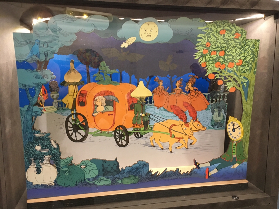 Nous avons visité l’exposition de Marie Caudry à la médiathèque de Montélimar. Il avait de grands affiches et des boîtes avec des décors en lien avec les contes, des vitrines.