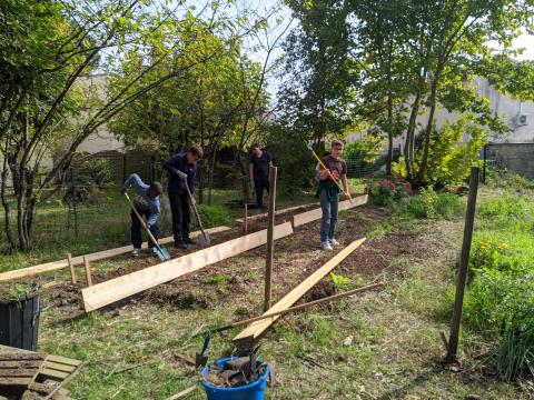 L'aménagement du jardin a débuté. Venez nous rejoindre nombreuses et nombreux pour nous aider à mettre en place les nouvelles planches de cultures potagères et les espaces dédiés aux plantes médicinales.