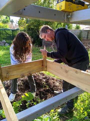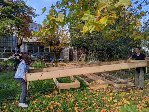 Les élèves du club jardin construisent les espaces de culture petit à petit.